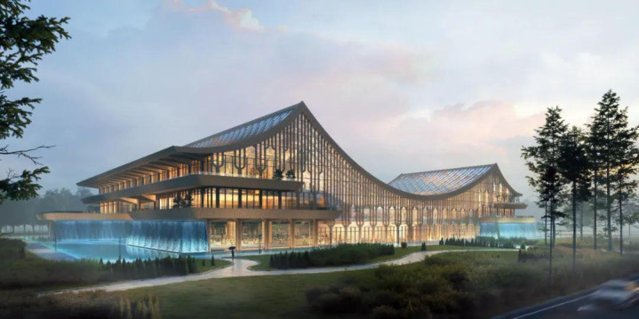 在建筑形态上,项目以“灵活多变、功能复合”为核心,建筑平面采用大空间布局,方便展会期间功能和展后功能的灵活置换,打造集展览展示、文化交流、休闲娱乐于一体的多功能文化综合体。建成后将具备作为举办园博会的主展馆功能,日常将作为呈现室内温室园林风光、荟萃南洋美食、展销狮城精品、展现社群活力的鲁新潮趣生活空间。
